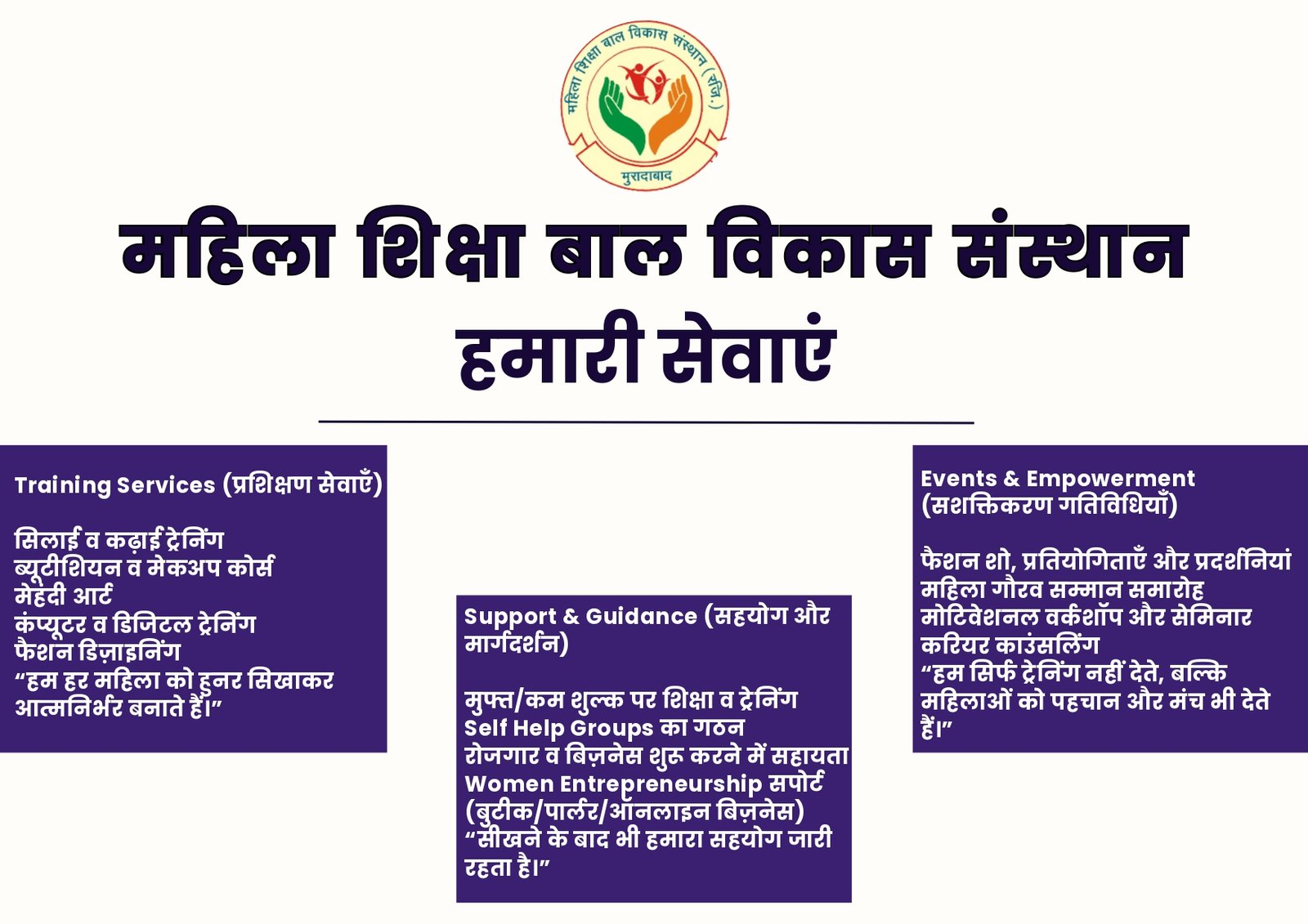“हर महिला को शिक्षित, आत्मनिर्भर और सम्मानित बनाना।”